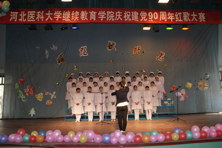 演出活动在一首“红旗飘飘”的歌曲声中拉开序幕。同学们个个精神焕发、服装整齐,嘹亮的歌声瞬间充满了整个活动现场,礼堂内气氛热烈,掌声不断。整个演出活动编排紧凑,形式多样。同学们还通过演出将自己亲手制作的道具向广大师生进行了展示,体现了他们多才多艺的一面。另外,比赛现场演出风格不乏有一些独特的设计构思,亮点频闪,博得了观众们的热烈掌声。 学院五年一贯制学生共有10支参赛队参加了比赛,院领导及部分老师担任评委,比赛采取现场打分的方式进行。09级护理专业2小班集体凭借“打靶归来”、“大中国”两支参赛取目,夺得了本次大赛的一等奖,其它班级获二、三等奖和组织奖。最后,刘桂玲院长向获奖的参赛队伍颁发了奖状。 按照学校党委的统一布署,今年在继续深入开展“创先争优”活动的基础上,学院全面认真贯彻落实创先争优“七个一”系列活动,把红歌赛作为其中一项重要的活动载体,紧密结合纪念建党90周年这一契机,精心筹划、认真准备、积极组织,使学生们在唱响红歌这项活动中接受伟大的爱国主义教育,让师生在唱红歌中激发报效国家、建设国家的豪情壮志。 | |